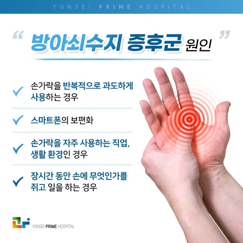 1) 반복적인 움직임: 오랫동안 반복적인 움직임으로 손가락이나 엄지손가락을 계속 사용하면 굴근 힘줄에 자극을 주어 염증을 일으키고 결국 손가락을 방아쇠를 당길 수 있습니다. 반복적으로 쥐는 작업이나 활동은 특히 위험이 높습니다. 2) 노화 : 방아쇠수지는 모든 연령층에서 발생할 수 있으나, 40~60세의 성인에서 더 많이 발생합니다. 정확한 원인은 완전히 명확하지는 않으나, 힘줄과 인대의 자연적인 마모 및 찢어짐에 의한 것일 수 있습니다. 이는 노화와 함께 발생합니다.3) 류마티스 관절염: 류마티스 관절염이 있는 개인은 방아쇠 수지가 발생할 위험이 더 높습니다. 관절염에 수반되는 염증은 힘줄이나 힘줄집의 부종에 기여하여 유발 효과를 일으킬 수 있습니다. 4) 당뇨병: 연구에 따르면 당뇨병 환자들 사이에서 방아쇠 손가락의 유병률이 더 높은 것으로 나타났습니다. 정확한 관계가 완전히 이해되지는 않았지만 연관성이 존재하며 당뇨병이 결합 조직에 미치는 전신 효과와 관련이 있을 수 있습니다.5) 통풍: 관절에 요산 결정이 축적되면 힘줄집을 포함한 주변 조직에 염증을 일으킬 수 있습니다. 일부 경우에. 방아쇠손가락이 발생할 수 있습니다. 6) 손목터널증후군: 손목터널증후군 치료를 받은 사람은 방아쇠 수지 발병 위험이 높아질 수 있습니다. 두 가지 상태 모두 손과 손목의 굴근 힘줄과 관련이 있으며 한 상태가 다른 상태를 악화시킬 수 있습니다.7) 직업적 위험: 특정 직업에서는 물건을 잡거나 들어올리거나 장기간의 수동 작업을 위해 손과 손가락을 광범위하게 사용해야 합니다. 방아쇠손가락의 위험이 증가할 수 있습니다. 여기에는 건설 작업, 정원 가꾸기 또는 손에 스트레스를 주는 모든 형태의 육체 노동과 같은 직업이 포함됩니다. 방아쇠수지 증후군 증상 1) 손가락 경직: 방아쇠수지 증후군의 초기 징후 중 하나는 특히 아침에 해당 손가락이나 엄지손가락의 경직입니다. 날이 갈수록 강직도는 점차 줄어들 수 있습니다. 2) 터지는 느낌 또는 클릭하는 느낌: 개인은 영향을 받은 손가락이나 엄지손가락을 움직일 때 터지는 소리 또는 딸깍하는 느낌을 경험할 수 있습니다. 통증이나 불편함을 동반하는 경우가 많습니다.3) 손가락 잠금: 더 심한 경우에는 손가락이 구부러지거나 구부러진 위치에 고정될 수 있으며 손가락을 곧게 펴기 위해 수동 조작이 필요할 수 있습니다. 이 잠금은 간헐적이거나 지속적일 수 있습니다. 4) 손가락이나 엄지손가락 밑부분의 통증: 통증은 일반적으로 영향을 받은 손가락이나 엄지손가락 밑부분(손바닥에 연결되는 부분)에 발생합니다. 불편함은 경증부터 중증까지 다양하며 움직임에 따라 악화될 수 있습니다.5) 결절 형성: 어떤 사람들은 영향을 받은 손가락이나 엄지손가락 밑부분에 결절이나 덩어리가 형성되는 것을 느낄 수 있습니다. 이 덩어리는 만지면 민감할 수 있으며 염증이 있는 힘줄이 두꺼워졌음을 나타낼 수 있습니다. 6) 운동 범위 감소: 상태가 진행됨에 따라 영향을 받은 손가락이나 엄지손가락의 운동 범위가 점점 제한될 수 있습니다. 이는 물건을 잡거나 주먹을 쥐려고 할 때 특히 두드러질 수 있습니다.7) 민감성과 불편함: 튀거나 잠기는 등의 기계적인 증상 외에도 영향을 받은 손가락은 움직이지 않을 때에도 민감하거나 아프거나 불편함을 느낄 수 있습니다. . 방아쇠증후군 치료방법 1) 휴식 및 활동조절 : 우선 증상을 악화시키는 활동은 자제하는 것이 좋습니다. 특히 밤에 부목을 사용하여 영향을 받은 손가락을 중립적이고 곧은 자세로 유지하면 통증이 완화되고 치유가 촉진될 수 있습니다.2) 비스테로이드성 항염증제(NSAID): 통증을 관리하고 염증을 줄이는 이부프로펜 및 이부프로펜. 일반의약품 NSAID와 같은 일반의약품 NSAID가 권장될 수 있습니다. 그러나 이는 일반적으로 장기적인 해결책으로 간주되지 않습니다. 3) 코르티코스테로이드 주사 : 코르티코스테로이드를 힘줄초에 주사하면 염증을 감소시키고 통증과 고정을 일시적으로 완화시킬 수 있습니다. 효과적이기는 하지만 그 이점이 영구적이지 않을 수 있으며 반복적으로 주사하면 효과가 줄어들 수 있습니다.4) 물리 치료: 손가락의 이동성과 근력을 향상시키는 운동이 권장될 수 있습니다. 물리 치료사는 증상을 줄이기 위해 열이나 얼음 요법, 초음파 또는 수동 스트레칭과 같은 기술을 사용할 수도 있습니다. 5) 경피적 방아쇠 해제: 이는 영향을 받은 힘줄 주변 조직에 바늘을 삽입하는 덜 침습적인 절차입니다. 바늘은 힘줄이 막히는 원인이 되는 수축을 해제하는 데 사용됩니다. 이것은 종종 초음파 유도 하에 수행됩니다.6) 방아쇠 개방 수술: 더 심하거나 재발하는 경우에는 힘줄 덮개의 수축된 부분을 절단하는 수술이 권장될 수 있습니다. 이 시술은 일반적으로 국소 마취 하에 시행되며 영향을 받은 손가락이나 엄지손가락의 밑부분에 작은 절개를 합니다.7) 수술 후 재활: 수술 후 영향을 받은 손가락의 전체 운동 범위와 기능을 회복하기 위해 물리 치료가 제공됩니다. 받아야 하는 경우가 많습니다. 수술 후 운동과 스트레칭은 최적의 회복을 위해 중요합니다. 방