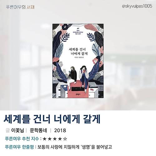 나는 세상을 건너 너에게로 갈 것이다. 저자 이꽃님 출판 문학동네 출간 2020.11.16.