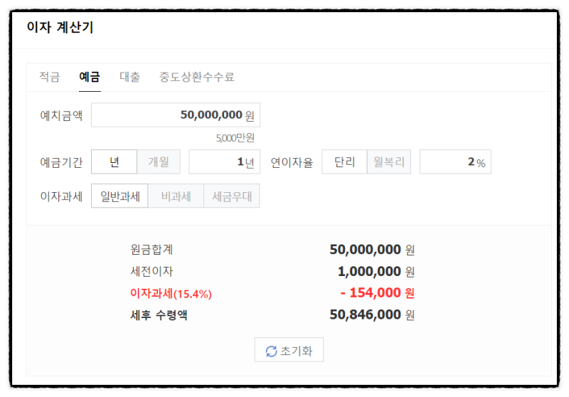 이자율이 같다면 복리 상품이 단리 상품보다 더 많은 이자를 얻을 수 있다는 사실을 이제 아셨죠? 게다가 복리는 금액이 클수록, 적금기간이 길수록 유리하니 꼭 상품에 가입하세요! 확인해 보시는 것도 좋을 것 같습니다. 예금적금 이자계산기그럼 마지막으로 예금적금 가입 전 필수 “이자계산기”를 알려드리겠습니다. 제가 가장 많이 사용하는 것은 네이버의 ‘재무계산기’입니다. 가입하려는 상품(예금, 적금)을 선택하고, 입금액과 기간/이자율/과세정보를 입력하면 예상되는 이자 금액을 바로 확인할 수 있습니다. 그래서 매우 편리합니다. 예금/적금 상품에 가입하기 전 이자를 계산하는 순간은 늘 설레고 행복합니다^^; 상품가입만큼 금리를 미리 확인하는 것도 중요해요! 잊지 마세요. 오늘은 예·적금에 대한 이자율과 단리·복리의 기본 개념과 이자를 계산하는 방법에 대해 알아봤습니다. 쉽게 설명하려고 노력했는데 이해가 되실지 모르겠네요. 다음 포스팅에서는 정기적립과 무료적립에 대해 설명드릴 예정이니 많은 관심 부탁드립니다!