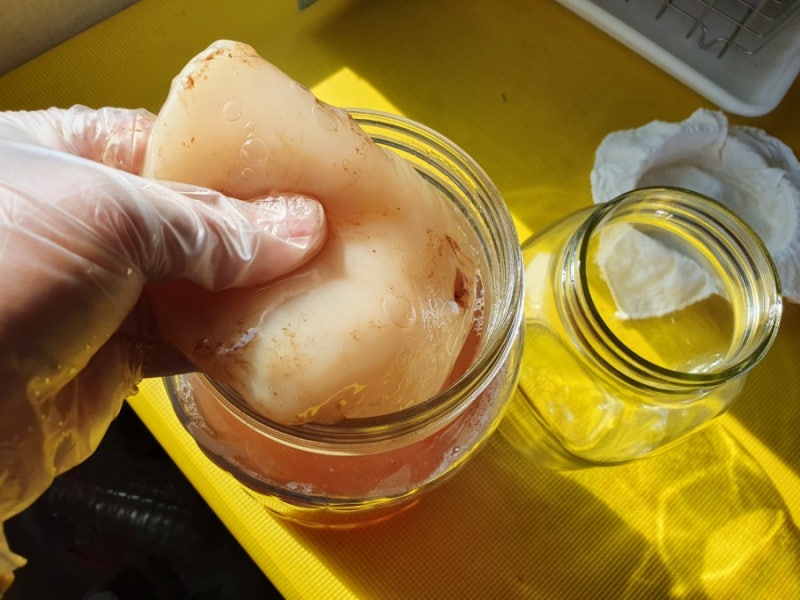 (1) 홍차 또는 녹차 물에 설탕을 넣습니다. (2) 차가운 차에 스코비를 넣는다. (3) 뚜껑 대신 천이나 한지로 밀봉하여 한 달 정도 숙성시킨다. (4) 발효가 진행되면서 생물막 스코비는 버섯 모양이 된다. (5) 발효시킨 스코비를 꺼내면 물이 콤부차가 된다. 이것은 공급입니다. *알다. 감식초를 만들 때 생물막이 두꺼워 감식초 입장에서는 열등한 감식초라는 뜻이다.콤부차 다이어트 원칙