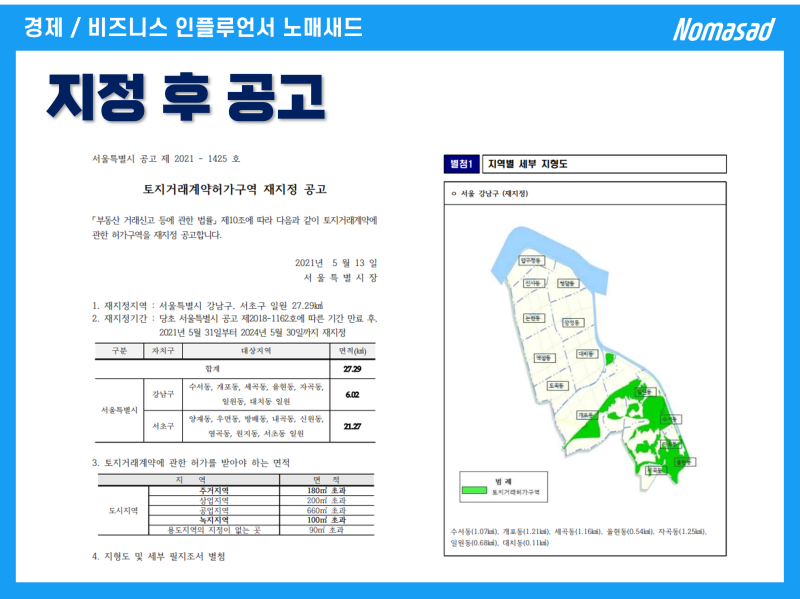 마지막으로 실제 입주에 관한 부분을 강조하고 싶다. 토지거래허가구역제도는 사익을 방지하고 실소비자를 고려하는 것을 원칙으로 하기 때문에 입주 후 2년간 실제 거주가 의무적이다. 레버리지를 이용할 경우 1개월 이내에 입주해야 하는 등 세부적인 제한이 많다. . 금전적인 불이익을 당하지 않도록 주의사항을 잘 확인하시기 바랍니다.