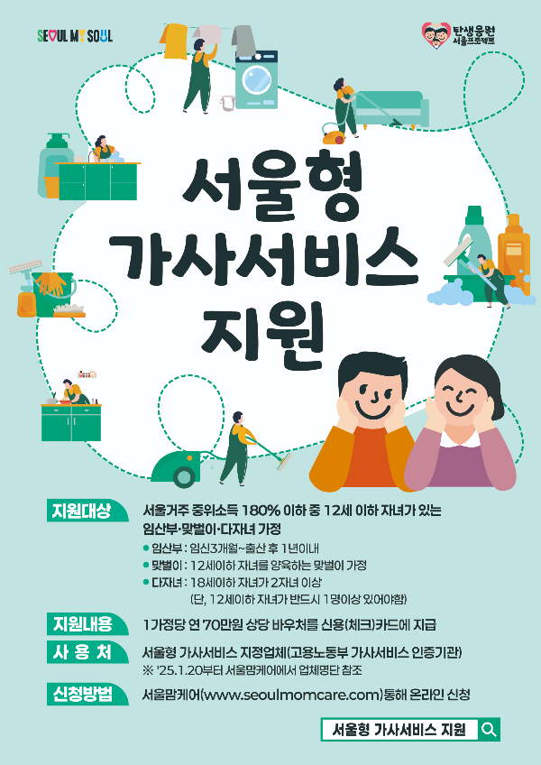 2025 년, 서울 유형의 산후 요리 비용 지원 지원 지원 지원 어머니 신청일 현재 서울의 아동 출생 보고서 10,000 원의 1 백만 원 바우처 포인트 (어머니의 신용). 수표) 카드 anta Dantaea 1 백만 원, Ssangtae 2 백만 원, Samtaea 3 백만 원 ※ Dateaa Heritage Site, Sasan 어머니의 어머니의 신청 (1 인당 1 백만 원) 후기 유산 후, 사우산의 경우, 확인 날짜로부터 60 일 이내에 신청서 ※ 제출 된 문서 (1) : 의사의 의견, 확인 및 사우 산 (사고로 입원 한 경우) ) 인증서, (입원) 조기 출산 등. https : //www.seoulmomcare.com- -herbal Medicine 준비 (허브 의학장, 동양 의학) 문의 문의 문의 문의 조사 Buk-Gu Health Center Health Management Division (02-2241-6007,6005) ▼ 더 자세한보기 ▼